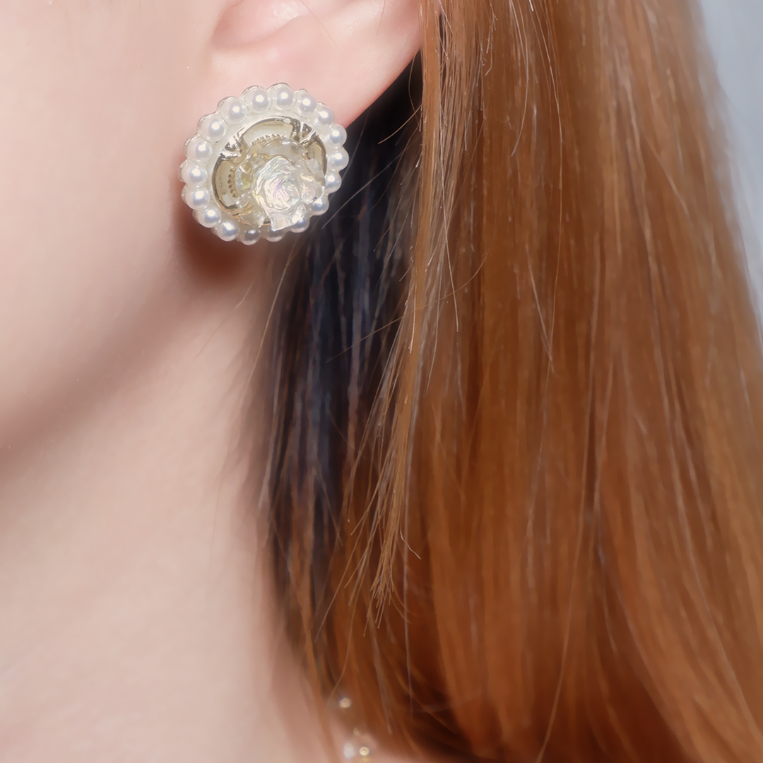 - 後扣兩戴款式,玫瑰鈕扣改造耳針可單獨戴