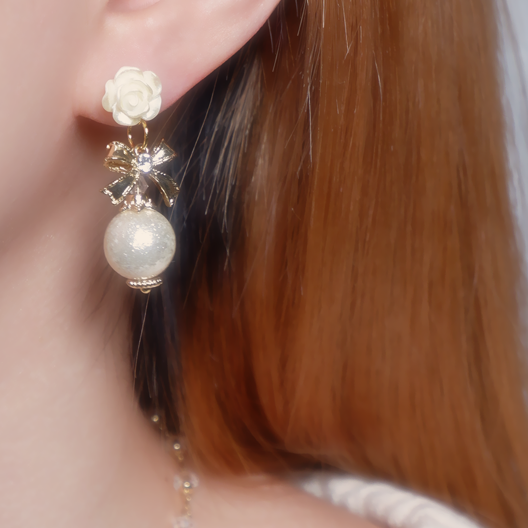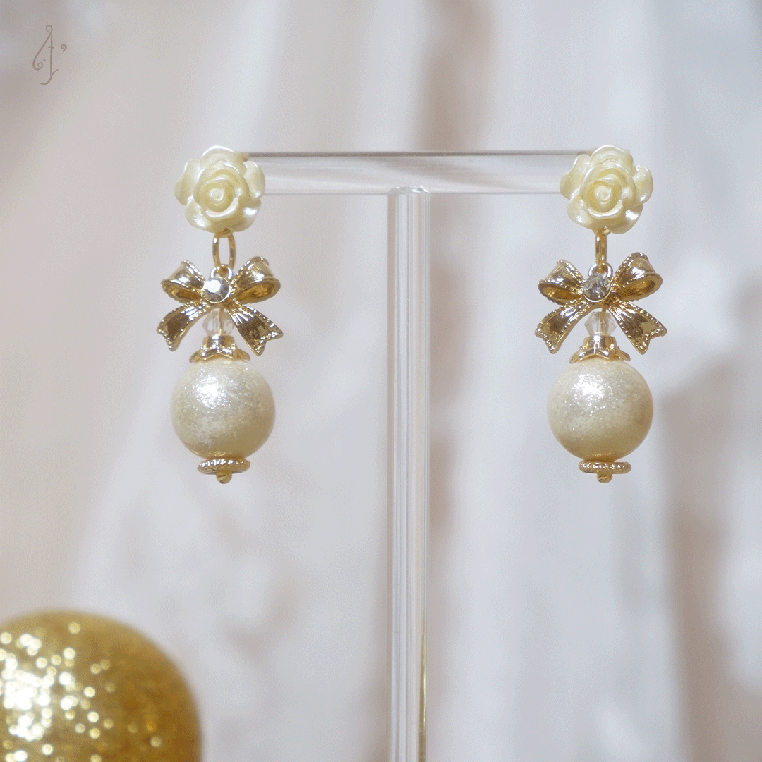 - 珠光面花花銀鍍K金耳針