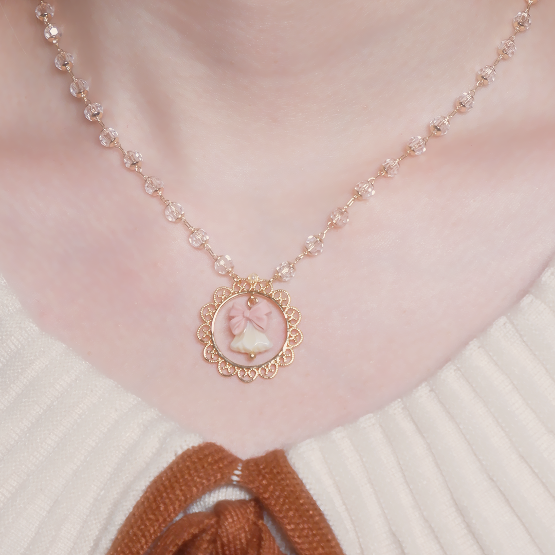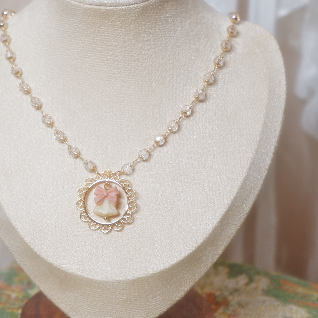 - 銅鍍K金玻璃水晶頸鏈,長約40cm+5cm延長鏈