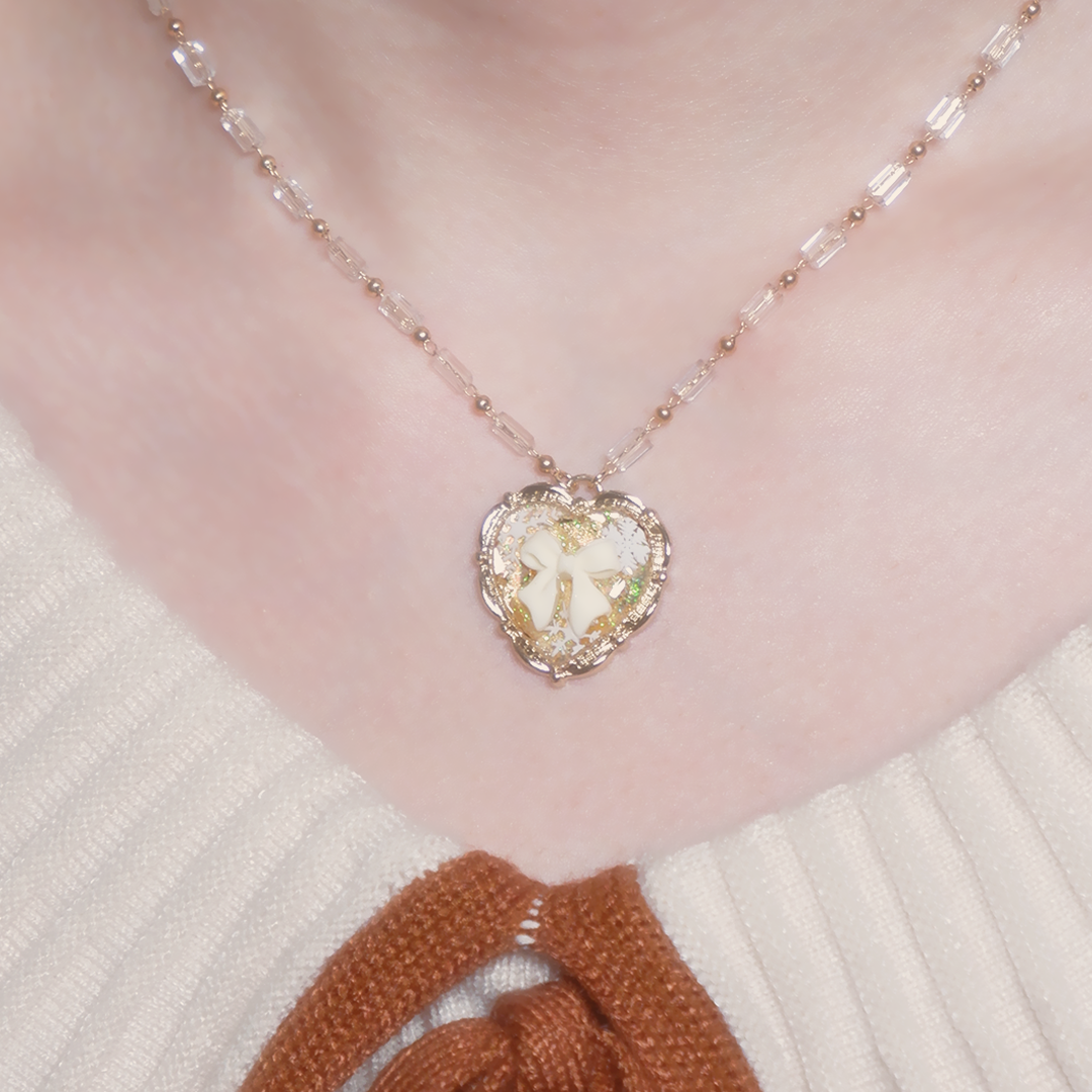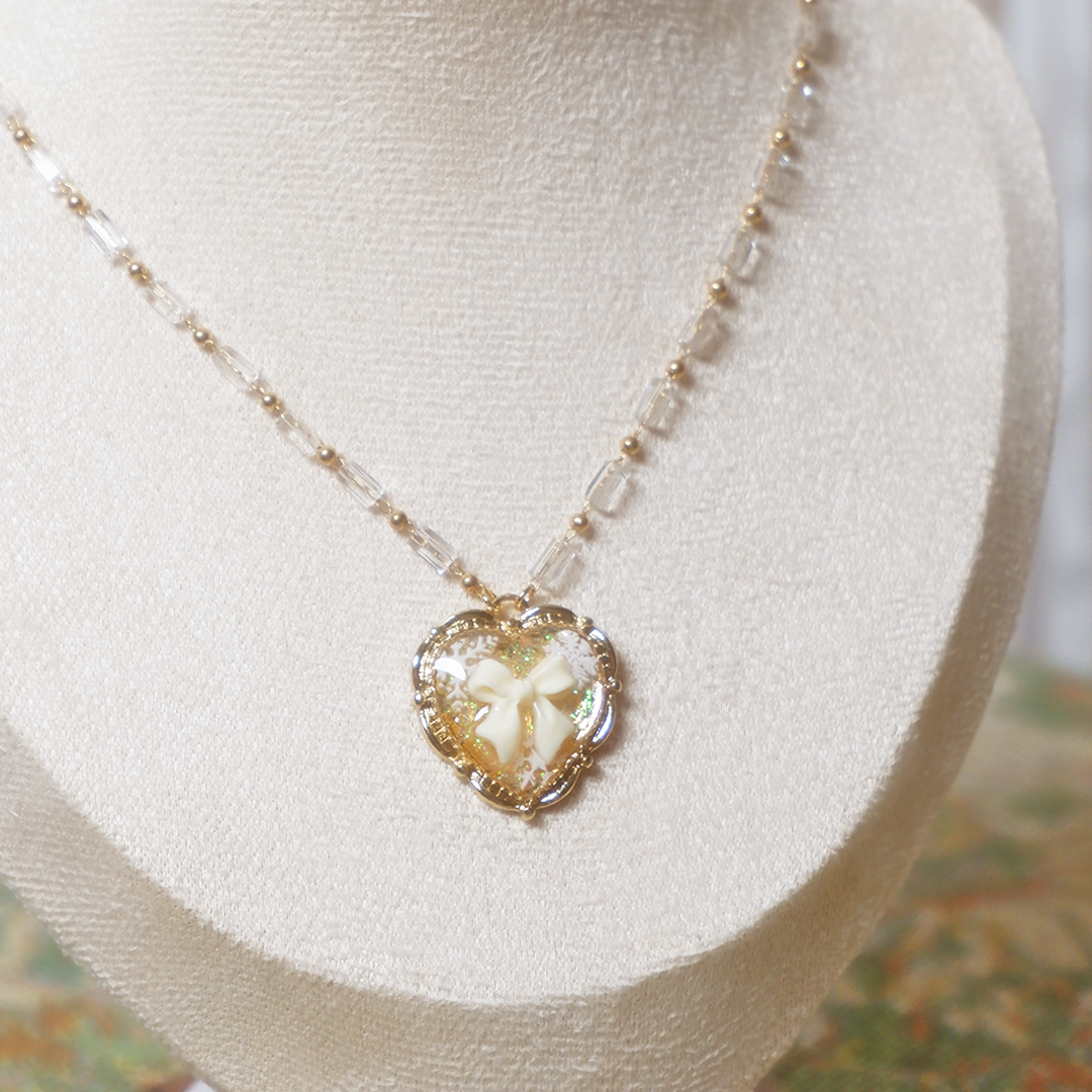 - 銅鍍K金玻璃水晶頸鏈,長約40cm+5cm延長鏈