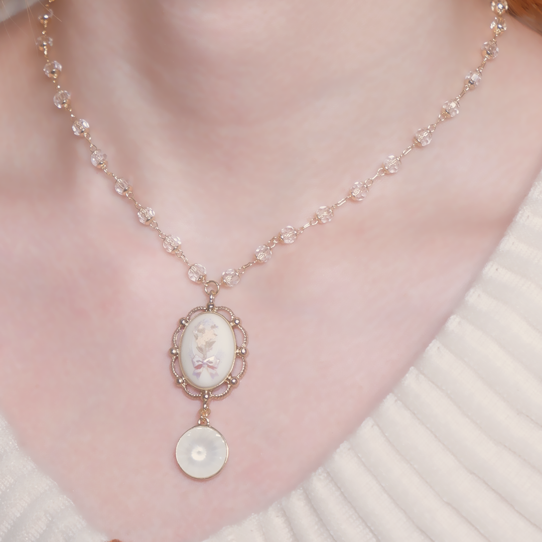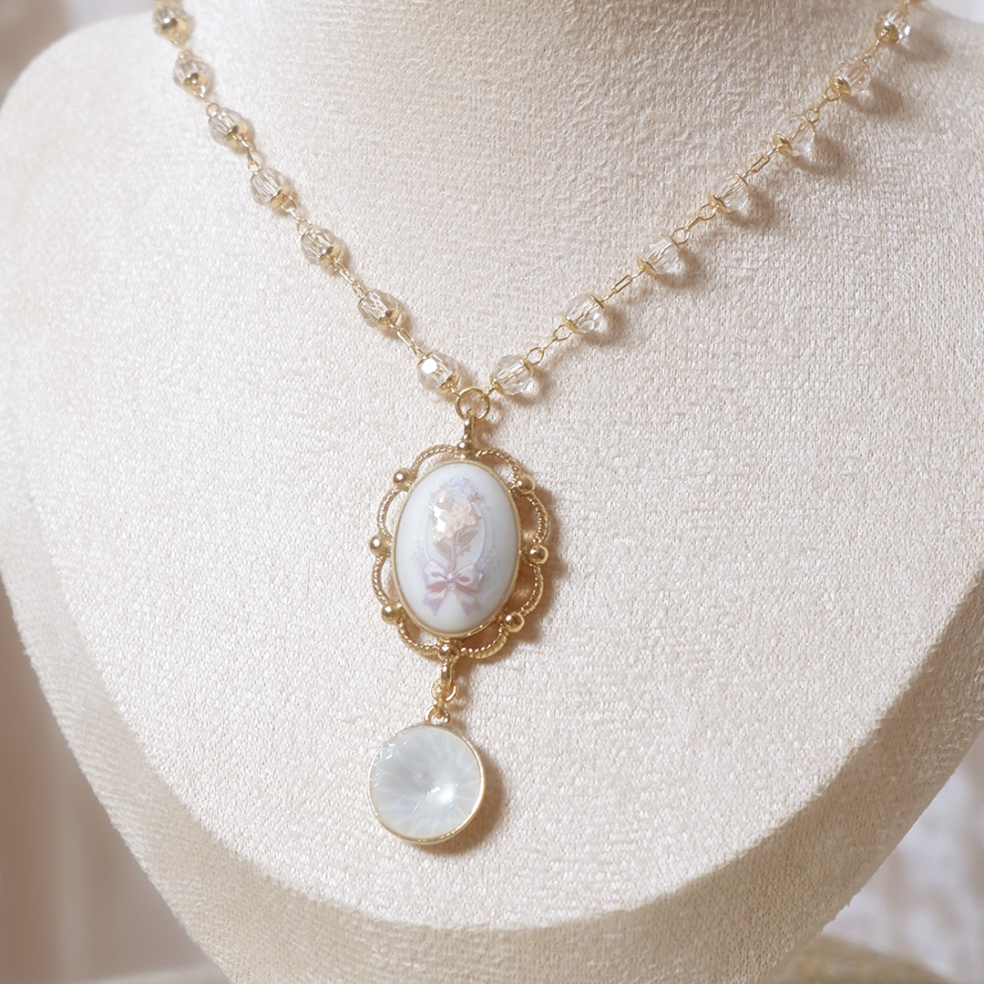 - 銅鍍K金水晶玻璃頸鏈,長約36cm+5cm延長鏈