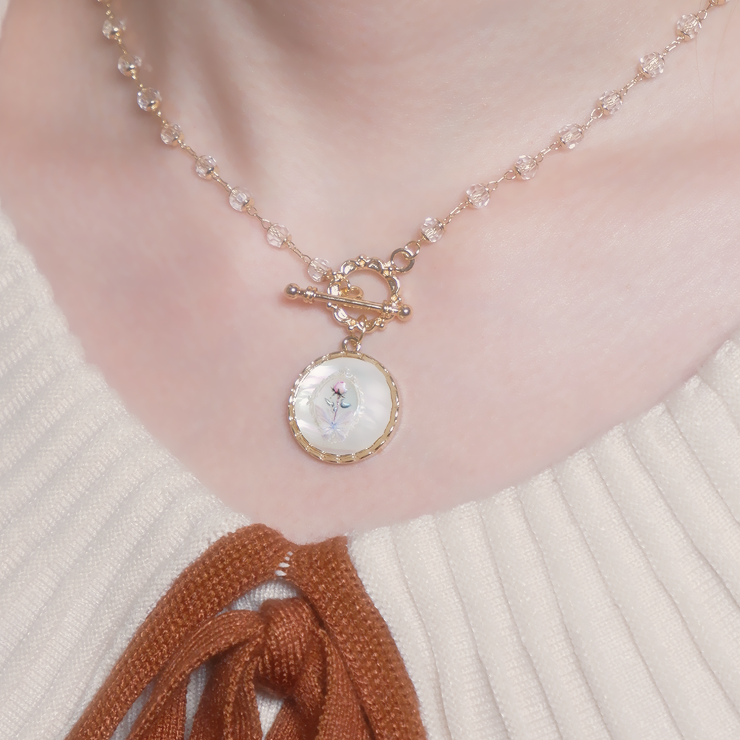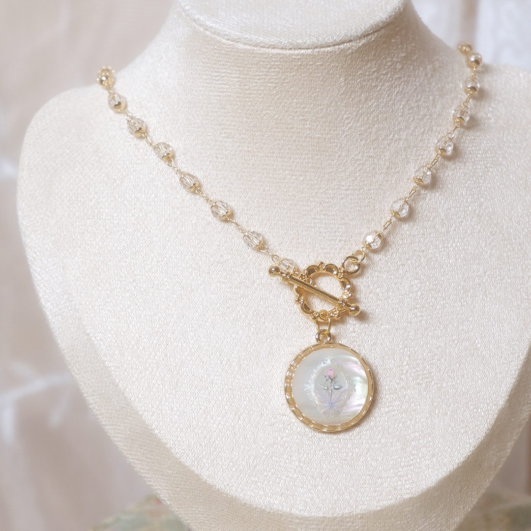 - 銅鍍K金水晶玻璃頸鏈,長約40cm