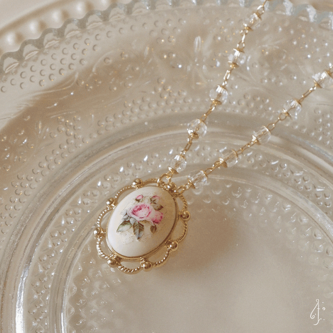 - 銅鍍K金玻璃珠頸鏈,長約40cm+5cm延長鏈